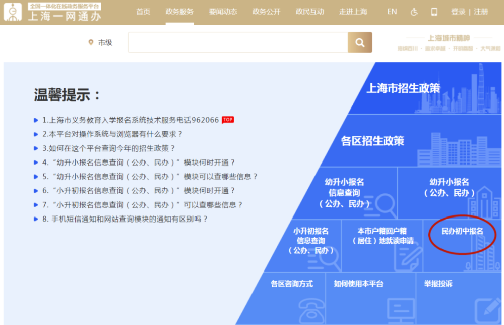 家长们可直接查询市教委公布的招生政策和政策问答、各区教育行政部门公布的义务教育阶段学校招生入学实施办法、划片招生方案等。