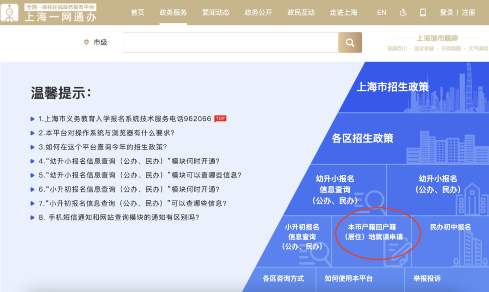 1)点击平台首页【本市户籍回户籍(居住)地就读申请】。