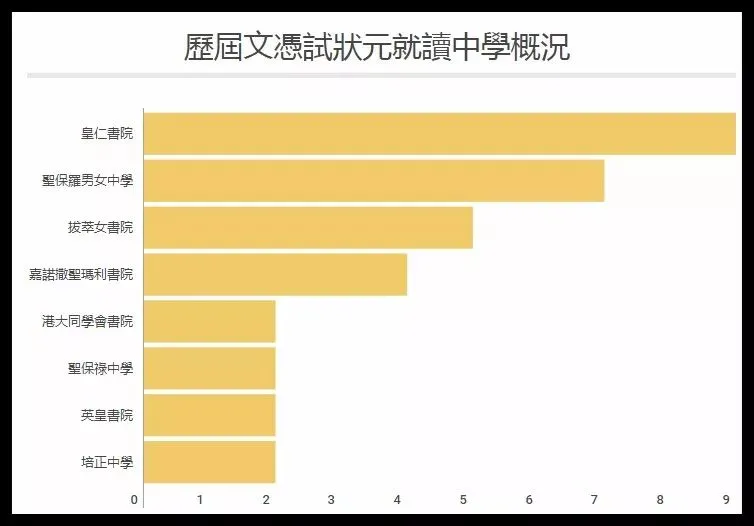 其次最多状元的是圣保罗男女中学,有7人中状元;再是拔萃女书院,出过5个状元。