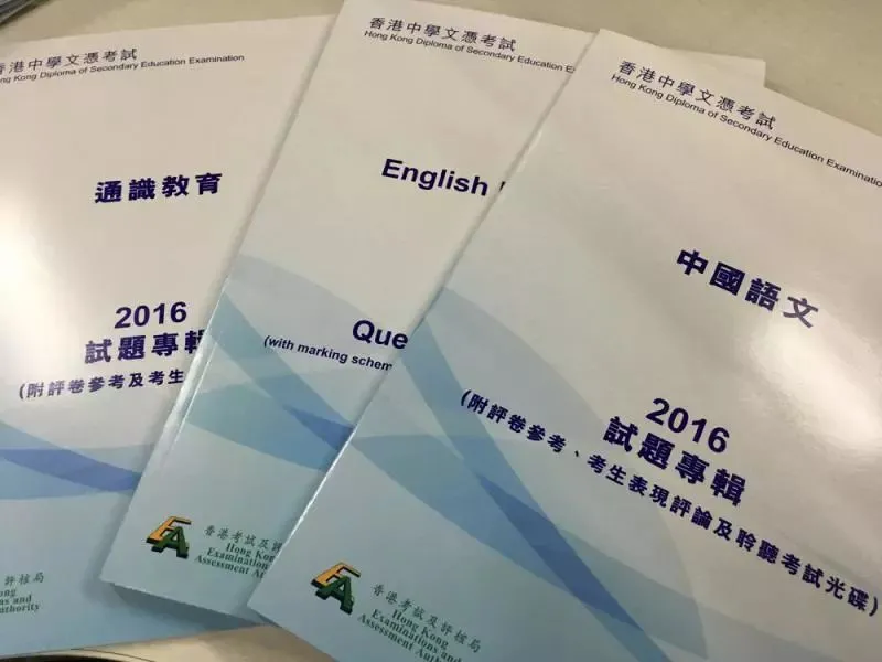 香港高考又叫“文凭试”,简称DSE。跟内地100或150满分制不同,香港每科都按5**、5*、5、4、3、2、1评级,一共考中文、英文、数学、通识4个核心科目+2至3个选修科目。