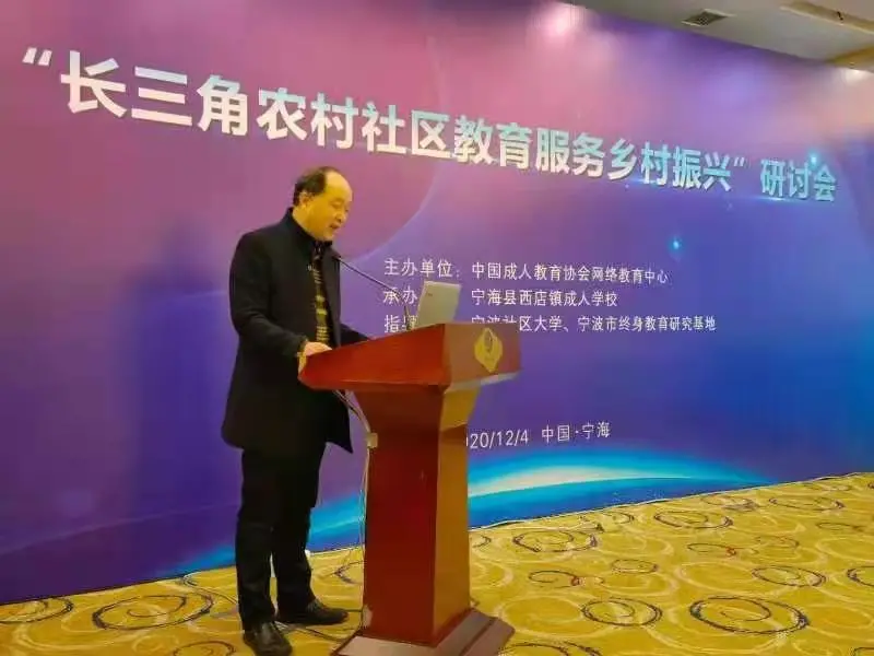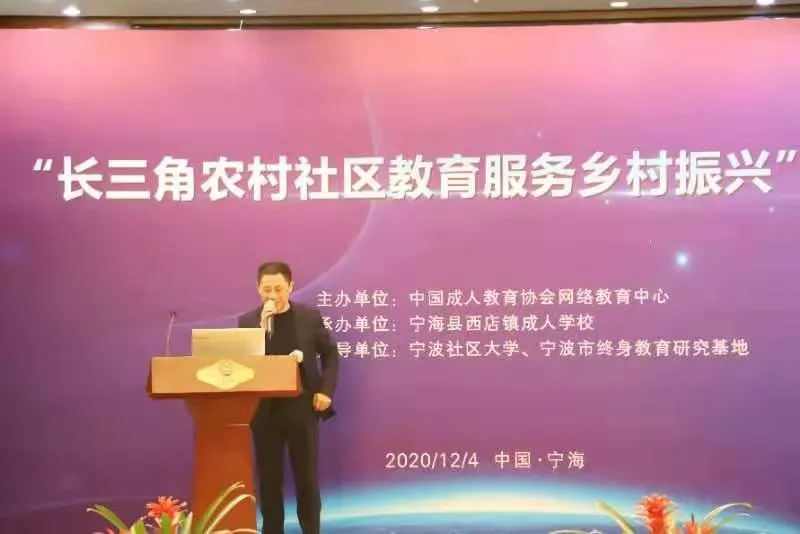 浙江省宁海县教育局副局长陈志伟致辞并指出,宁海成教近几年的实践,形成"培训基地+企业"等六大模式,秉持五大发展理念,一直行走在探索助推乡村振兴的路上,此次推进会的开展,为长三角地区社区教育助力乡村振兴打开了一扇明窗。