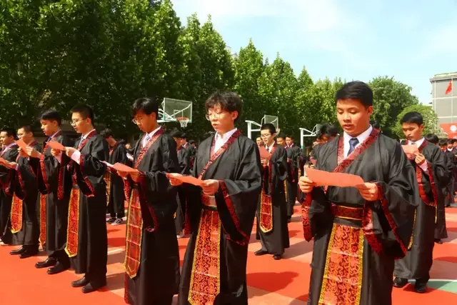 自强不息怀壮志以长行,厚德载物携梦想而抚凌。同学们举起右拳,立下成人誓言:巍巍中华,浩浩其行;道义不辞,大任始承。龙之传人,天命东方;赐我荣光,降我大任。强我体魄,励我精神;树我正气,振我国魂。成人立事,责任在心;俭以养德,朴以修身。信以立业,诚以待人;忠以报国,孝以侍亲。志存高远,心怀礼仁;遵守法纪,学做公民。博学弘毅,敏言慎行;天道酬勤,温故知新。铁肩道义,肝胆赤诚;铮铮誓言,师友为证。任重道远,奋然前行;乘风破浪,柳暗花明。赤子安在,吾辈即征:十八年纪,顶天立地!铮铮誓言表达了同学们的郑重期许和庄严承诺。