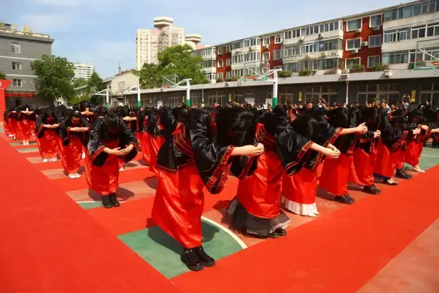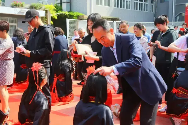 古语云:冠者,礼之始也。我国自古就有为青年男女举行“冠衣”、“笈礼”的传统,今天我们也要传承这一优秀文化,助力人翠学子在人生道路上阔步前行。仪式上,家长们用双手将成人帽和精美的冠钗举到眉间,庄重地为孩子们戴上,看他们从稚嫩变得成熟,从无助蜕变得坚强。冠笄之礼,彰显着青年人将由家庭中毫无责任的孺子,转变为正式跨入社会的成年人,践行孝悌忠义的德行,承担起对个体人生、家庭社会乃至国家的责任和义务。此刻,孩子已长大,从今天开始,他们将开启新的征程,成长为家庭的支柱,国家的栋梁。随着一封沉甸甸、饱含深情的家书,有着十八年来对父母不曾诉说的感激;一个深深的鞠躬,是感恩您最真诚的方式。