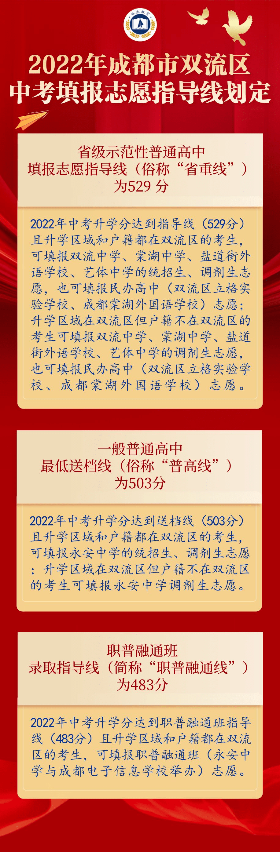 郫都区一般普通高中志愿填报最低控制分数线(简称“普高线”)为469分