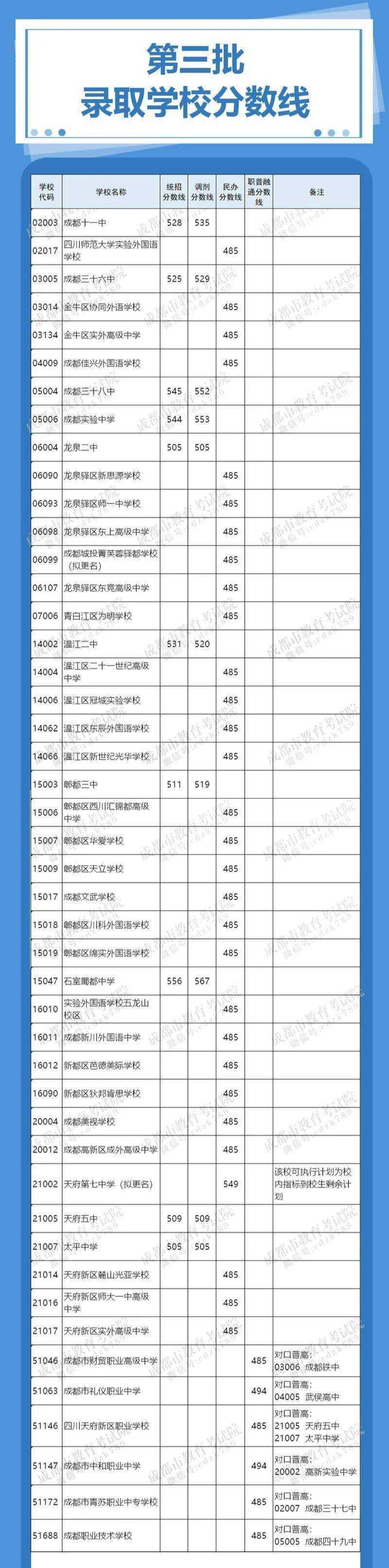2022成都“5+2”区域中考第三批录取分数
