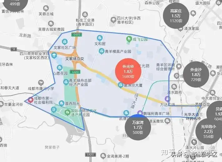 商业方面,外光华优势明显,大型商超比如盒马鲜生、鹏瑞利、青羊万达、西环广场等等,整个板块生活配套非常成熟;