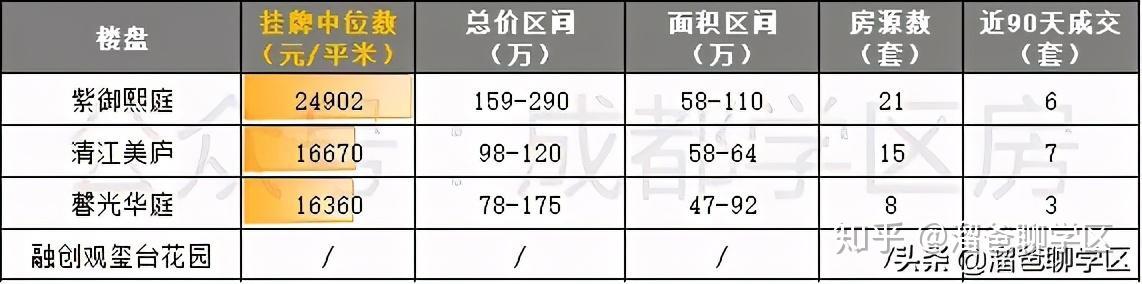 这4个楼盘居住排名:融创观玺台>紫御熙庭>馨光华庭>清江美庐。