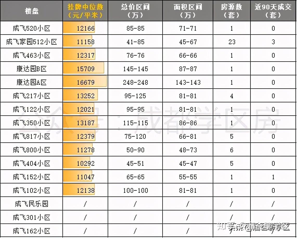 实小成飞分校划片范围内的最低门槛来自成飞家园512小区,面积为45平米的套一,总价41万;