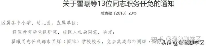 同辉国际学校,现任校长为翟曦,就是其同辉国际副校长,主要分管学校的教学工作,此前也曾在区教育局任过职。