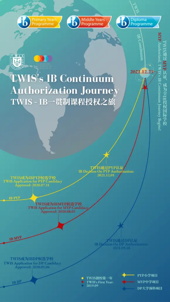 自学校创办以来,TWIS一直按照远高于IB授权标准的要求进行全IB课程项目的规划与实施。因此,TWIS能够以优异的成绩通过了三大项目的授权,并获得了IBO组织的高度认可。