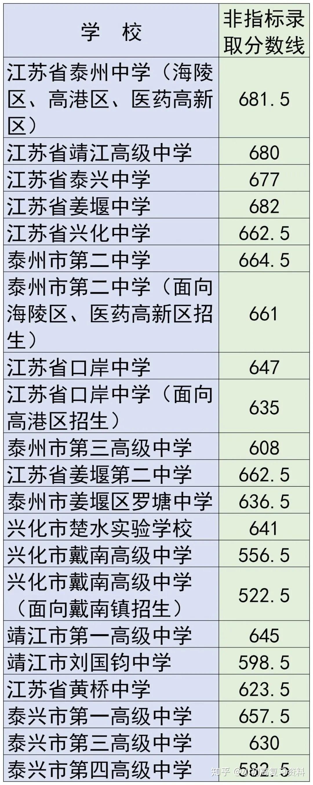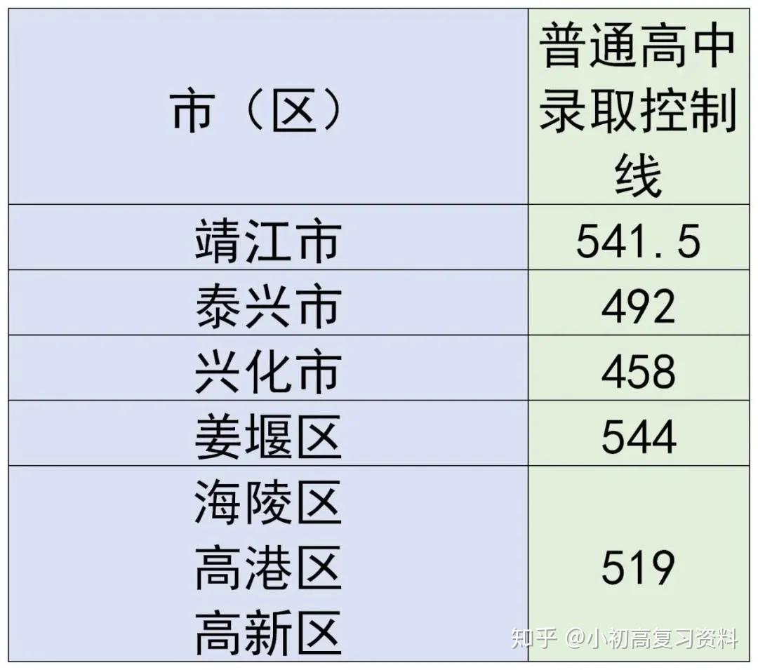 2020年江苏泰州中考四星级普通高中录取分数线公布