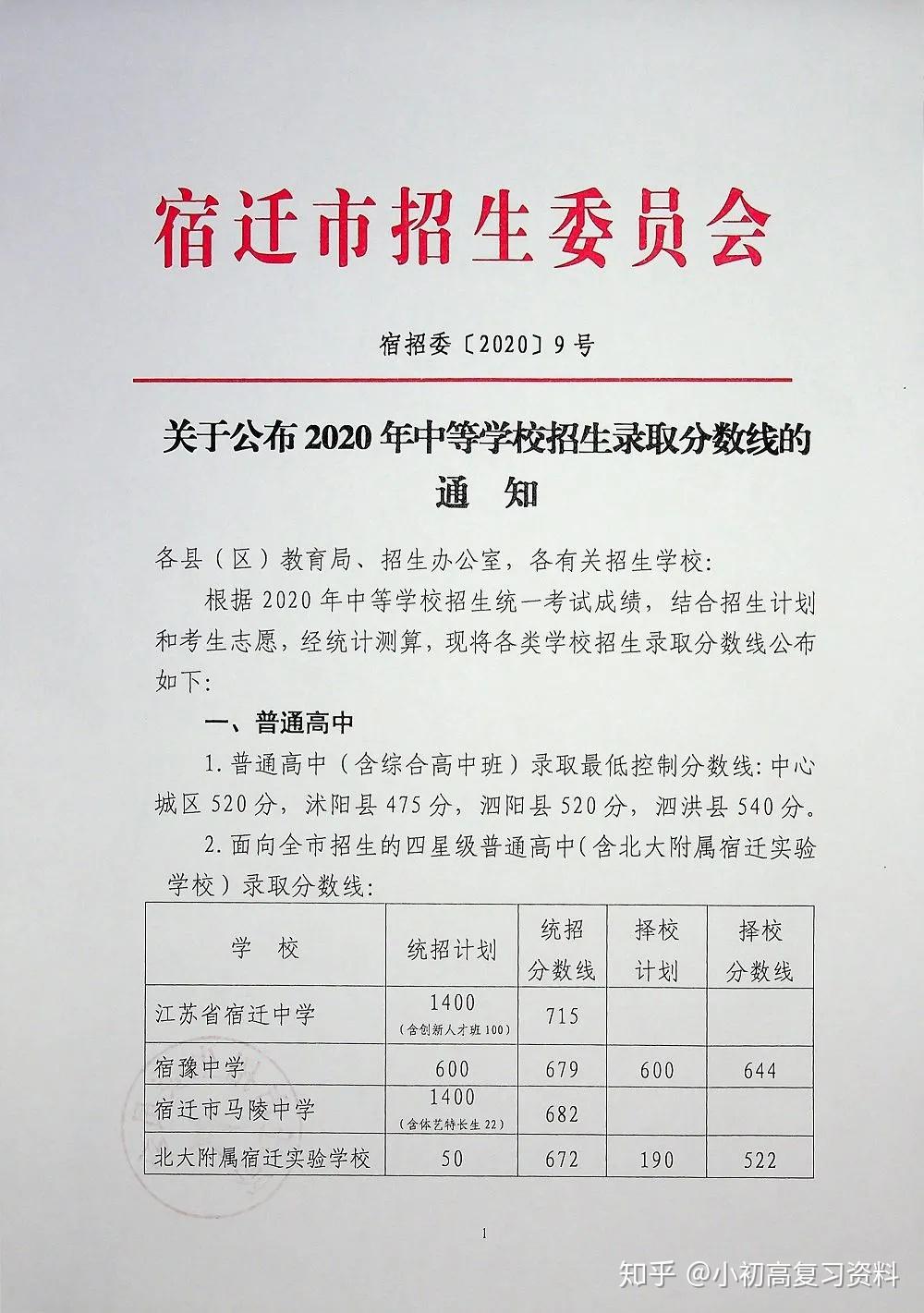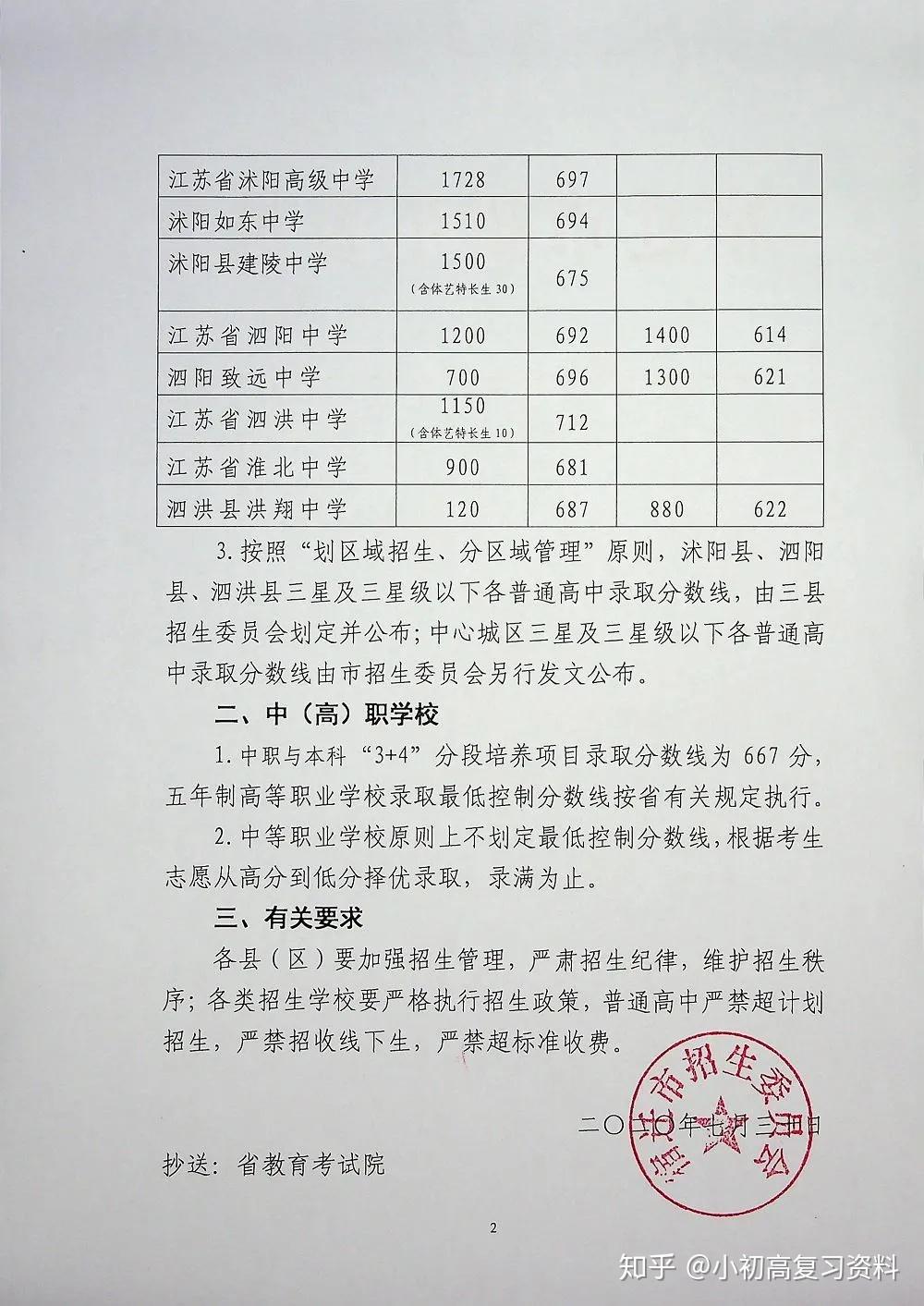 普通高中录取最低控制分数线,中心城区520分,沭阳县475分,泗阳县520分,泗洪县540分。具体如下: