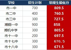 说明:办有特色班的学校,特色班录取分数线在普通班分数线下10分
