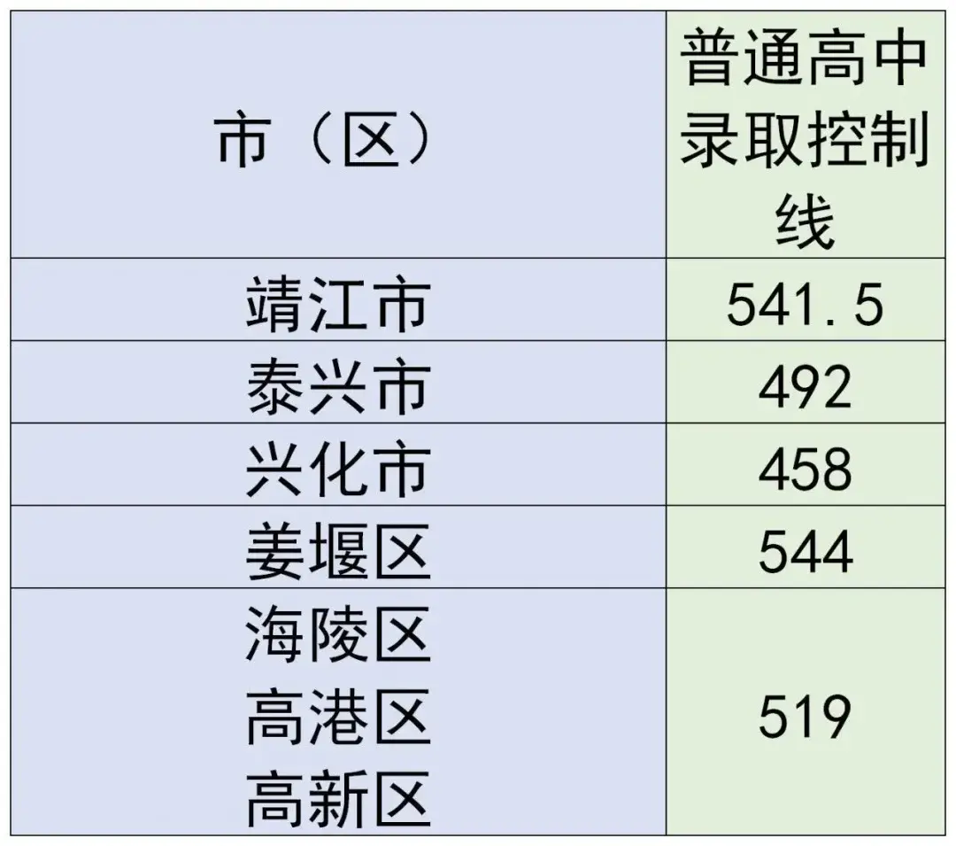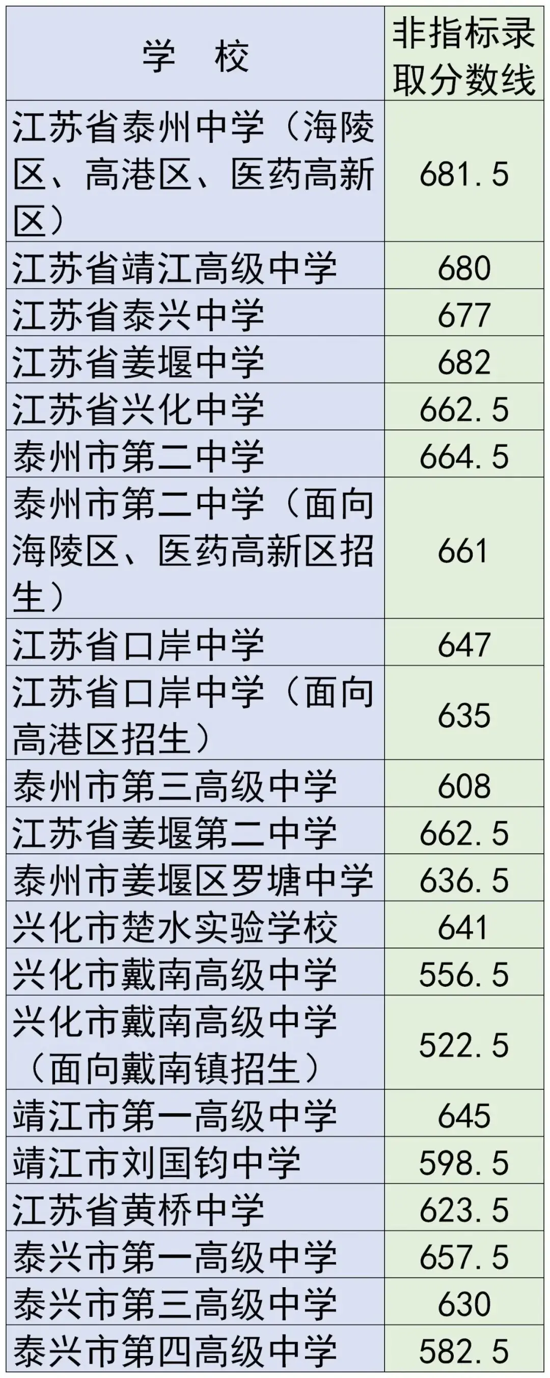 2020年江苏泰州中考四星级普通高中录取分数线公布