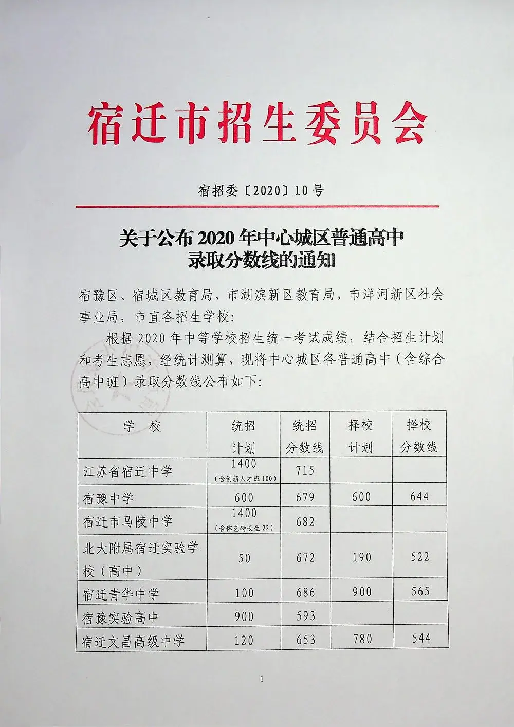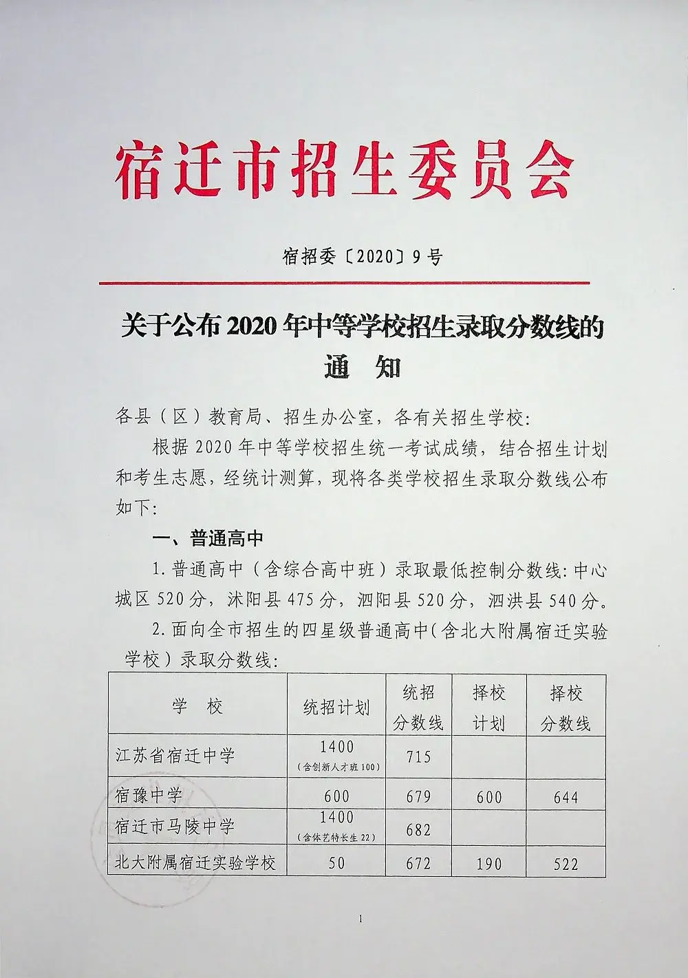 普通高中录取最低控制分数线,中心城区520分,沭阳县475分,泗阳县520分,泗洪县540分。具体如下: