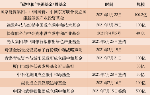 “双碳”战略之后,新成立的“碳中和”主题基金/母基金
