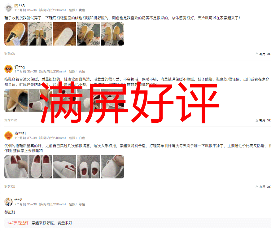 看了一堆的拖鞋,大部分都薄的跟纸一样,穿上像踩在石头上一样,直冻脚,一点都不保暖!