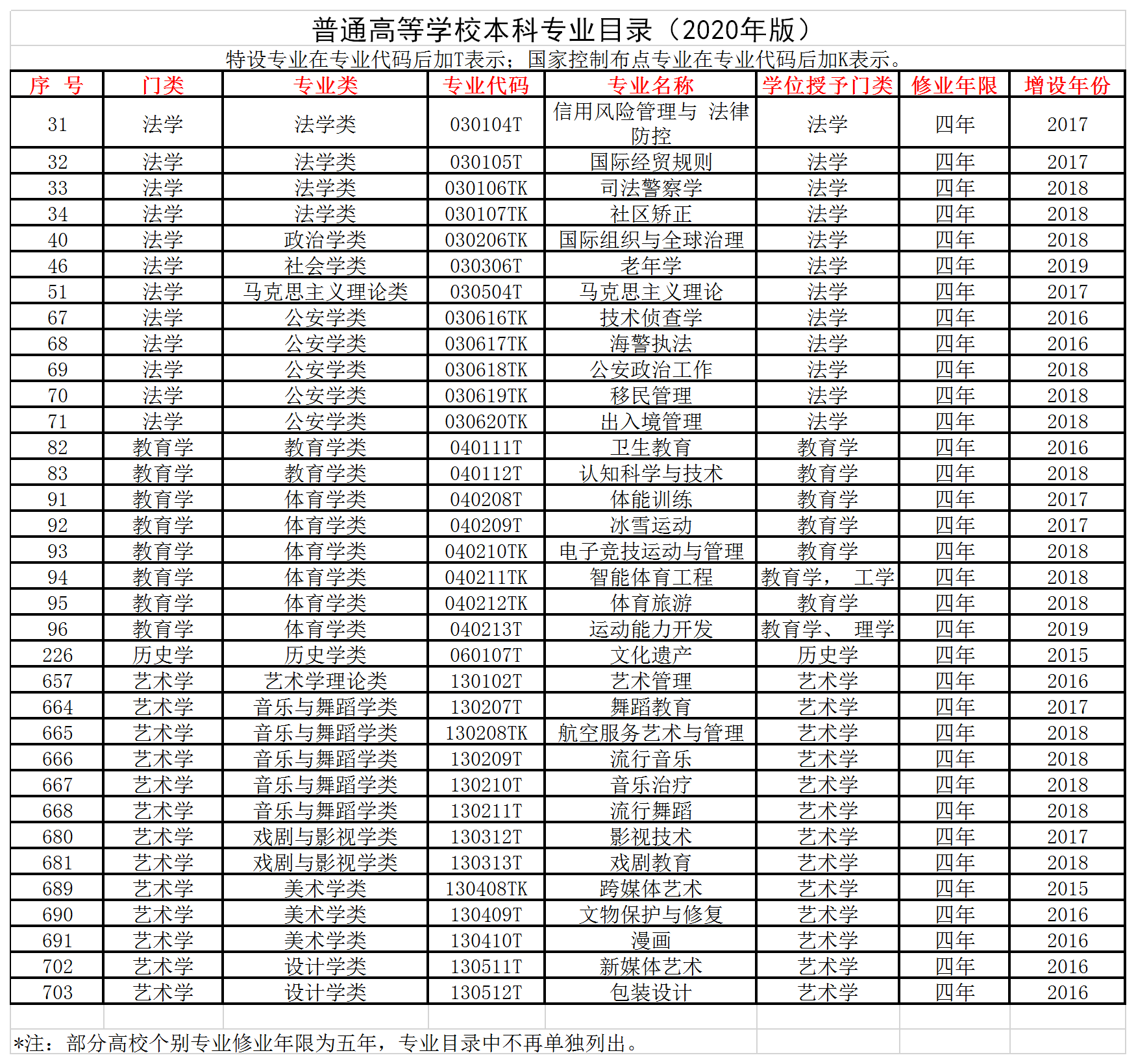 共计增设34个专业,其中法学12个,教育学8个,历史学1个,艺术学13个。