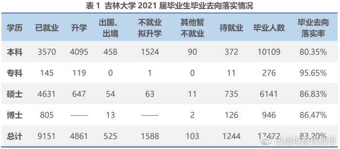 1、从19-21年的就业报告数据来看,吉大确实是底蕴深厚!升学质量提升很快,毕业生的素质得到各大名校的认可!