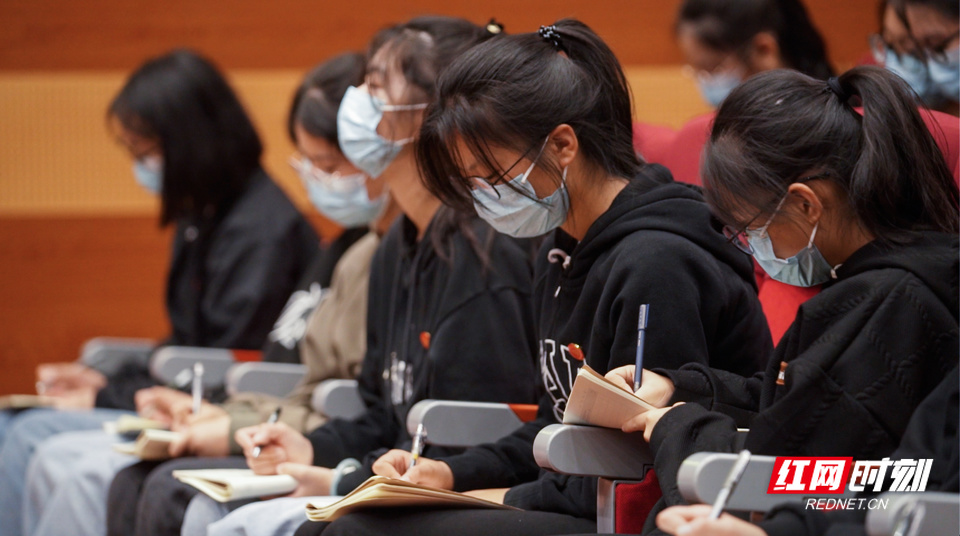 11月4日下午,宣讲现场,高校学生认真记录。(朱丽萍 摄)再来聊聊湖南师范大学。